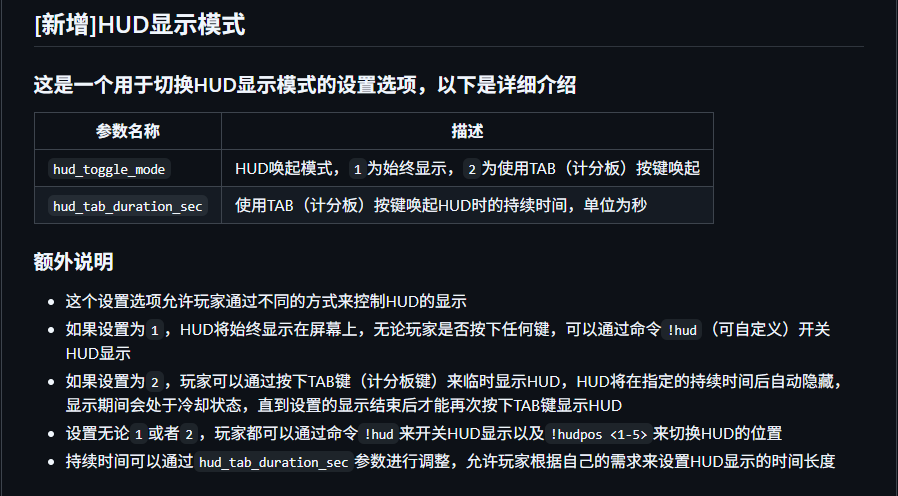 服务器管理员可以通过编辑配置文件,切换HUD的唤起方式,目前提供两种模式: