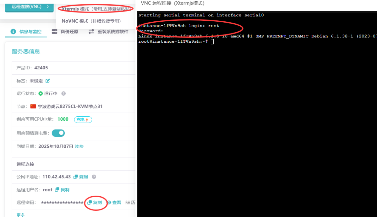 然后复制密码,在第二个密码框直接右键粘贴。密码不可见,粘贴后直接回车即可;当提示变为 root@xxx#,说明登录成功。