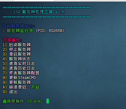 按照操作提示的数字进行回车确认。服务器默认端口为 27015,你的地址即为 IP:端口。可在 CS2 控制台输入 connect 127.0.0.1:27015 进行本地测试;外网玩家连接请使用公网 IP。若使用 NAT 模式,请确保端口映射正确。