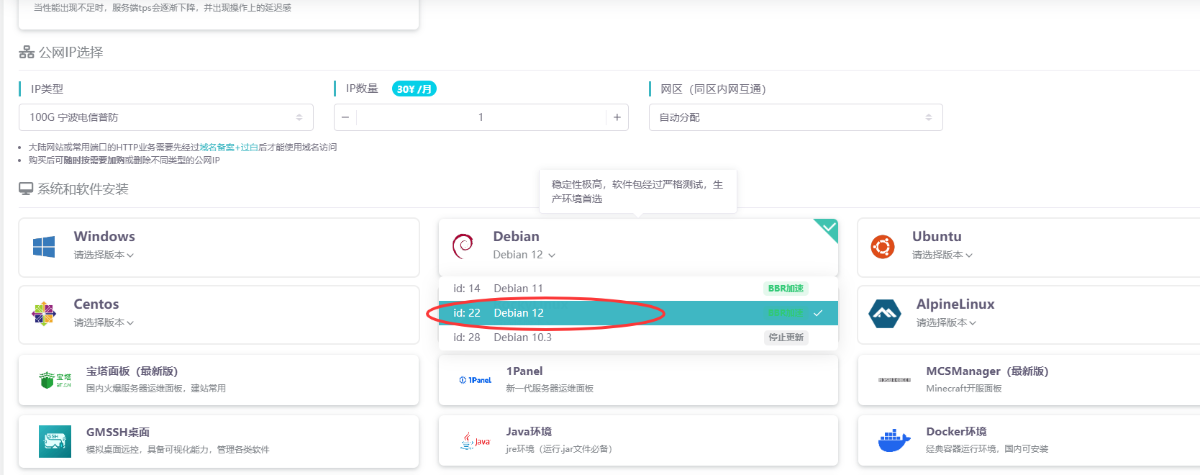 首先需要有一台稳定的服务器,建议至少选择 2 核 CPU + 4GB 内存 + 60GB 以上磁盘的配置,系统推荐 Debian 12。主流云厂商(腾讯云、阿里云等)都可以,根据预算与性价比自行选择;与此同时,务必提前确认是否支持 UDP 以及网络防护策略,以免后续联机或插件请求受限。
