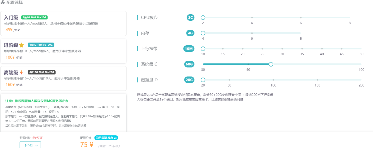 如果不想注册,或希望持续享受优惠,也可以直接联系我代购;坛友享 7.5 折,续费同价。雨云老板是我的朋友,以前一起搞GTASA联机的,看着他自己写IDC程序到现在的规模,很多年了,基本不会出现数据丢失或莫名其妙的服务器故障。仅有的黑料就行低配机器性能一般,当然主要也是他家卖的那些海外VPS,1c1g那种小鸡配置不拉上去稍微跑一下就吃不消,游戏云的机器都是高配。